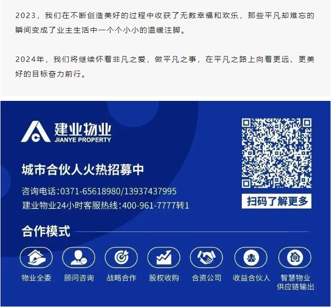 這一年,建業(yè)物業(yè)人在平凡的崗位上,不斷創(chuàng)造美好,以更好的面貌來迎接建業(yè)物業(yè)的第30年。