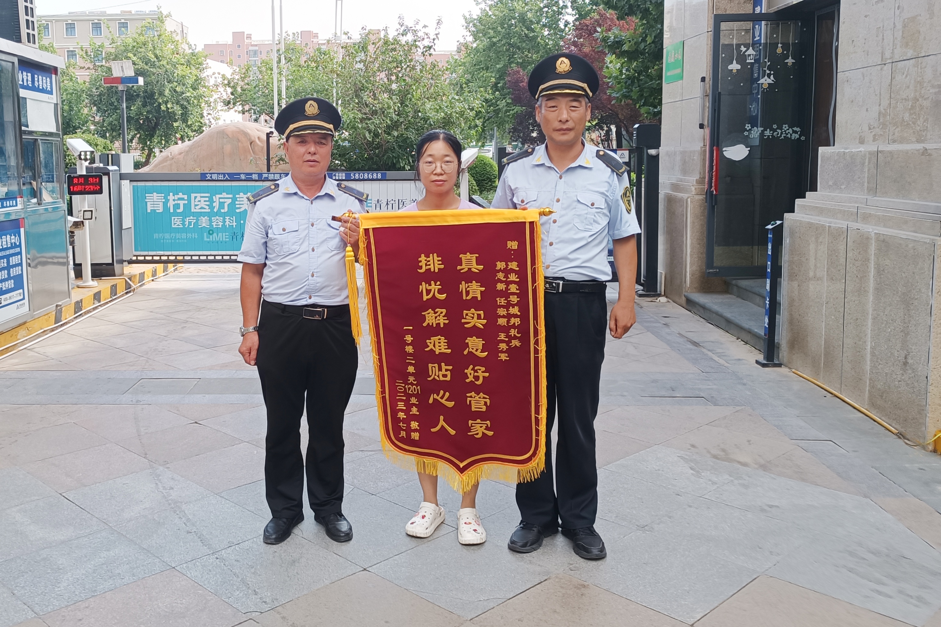 熱情和真誠(chéng)的品質(zhì)往往擁有著美好的力量,它如燭光一樣照亮人們的生活,也溫暖著人們的內(nèi)心。在每一個(gè)日常中,建業(yè)物業(yè)人總是耐心傾聽(tīng)每一個(gè)業(yè)主的需求,熱情為他們解惑釋疑,排憂解難。 8月份,建業(yè)物業(yè)在管園區(qū)涌現(xiàn)出好人好事951件,其中收到錦旗226面、感謝信94封、其他致電表?yè)P(yáng)等631次。 臨時(shí)媽媽 一天中午12點(diǎn),濟(jì)源·建業(yè)貳號(hào)城邦貼心管家王婉婉接到業(yè)主成女士電話,由于近期成女士騎車不慎摔傷,行動(dòng)不便,沒(méi)人接送小女兒去輔導(dǎo)班。正在家中休假的王婉婉立刻將這一情況上報(bào)給了管家經(jīng)理石惠敏,石惠敏二話沒(méi)說(shuō)便立刻趕往成女士家中將其女兒送至輔導(dǎo)班,并在下班后又將其接回家中。第二天,王婉婉上班后,便接手了接送小業(yè)主的工作,直到近一個(gè)星期后,成女士家人回來(lái)。半個(gè)月后,養(yǎng)好傷