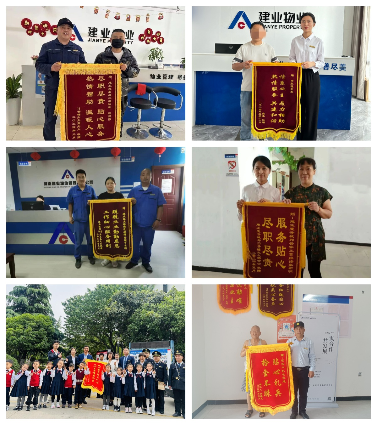 5月,建業(yè)物業(yè)在管園區(qū)涌現(xiàn)出好人好事903件,其中收到錦旗284面、感謝信66封,其他致電表揚(yáng)等553次。
